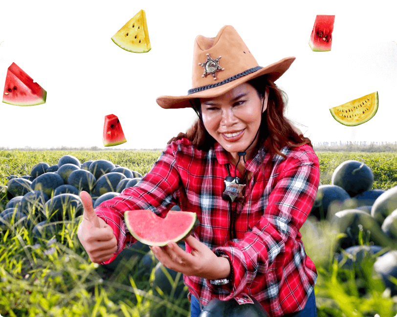 เราเป็นทั้งเกษตรกร ผู้รวบรวมค้าส่ง และค้าปลีก เชื่อมโยงเครือข่ายเกษตรกรทั่วประเทศ พร้อมความเชี่ยวชาญในตลาดแตงโมไทย